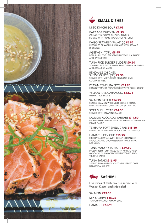 With salmon, spring onion, shichimi spices, avocado And cucumber rolled in tempura crumbs with lime mayo